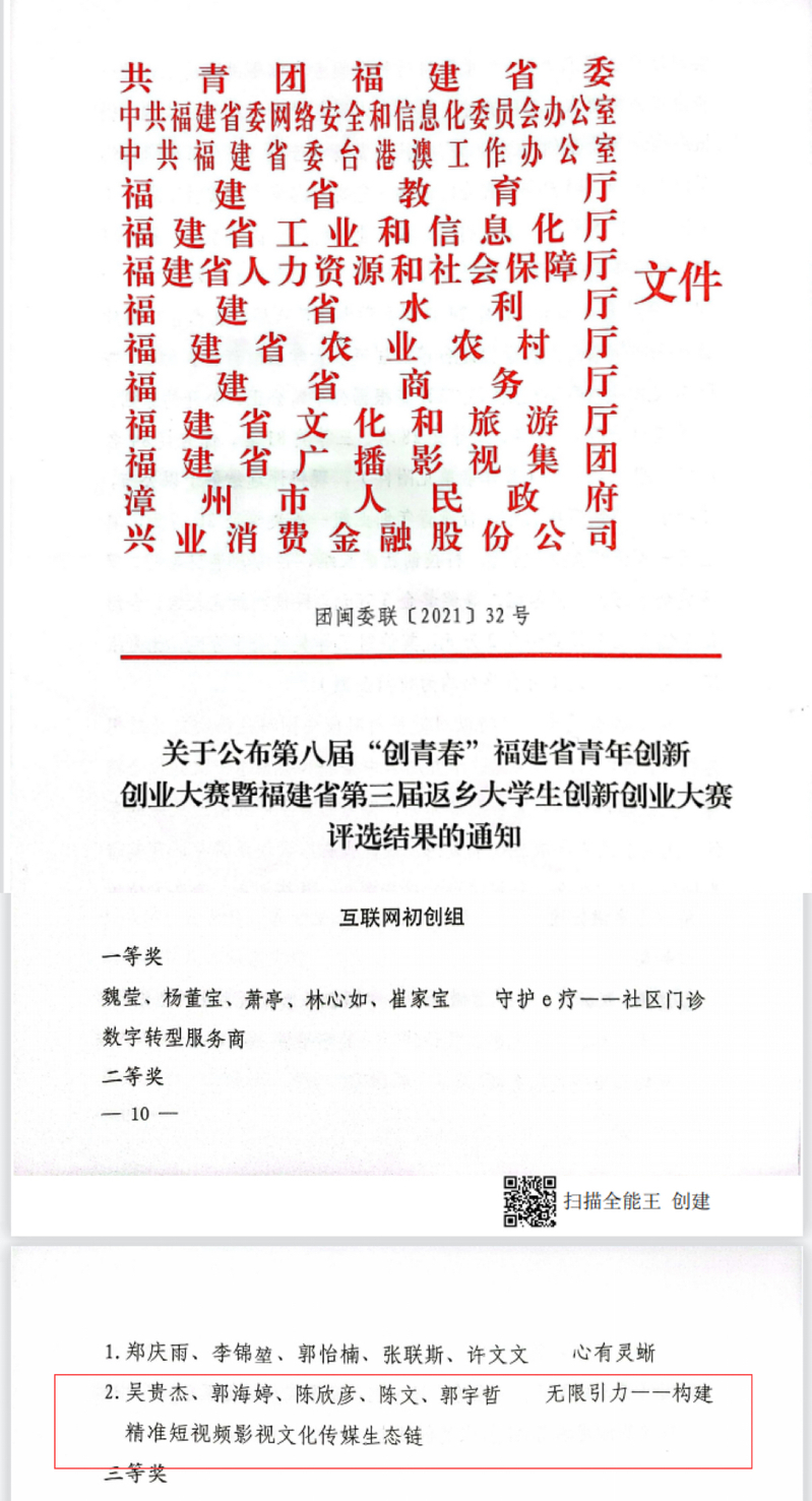 第八屆“創(chuàng)青春”福建省青年創(chuàng)新創(chuàng)業(yè)大賽暨福建省第三屆返鄉(xiāng)大學生創(chuàng)新創(chuàng)業(yè)大賽互聯(lián)網初創(chuàng)組二等獎