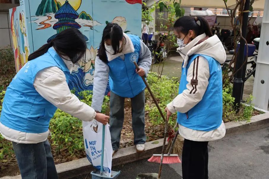 在社區(qū)里,隨處可見(jiàn)身著藍(lán)馬甲的志愿者身影,他們紛紛化身“環(huán)境美容師”,擼起袖子,默契配合,清掃路面落葉、拾撿白色垃圾。青年志愿者們用他們的雙手,用他們的汗水,給居民們營(yíng)造了更和諧,更干凈的社區(qū)。