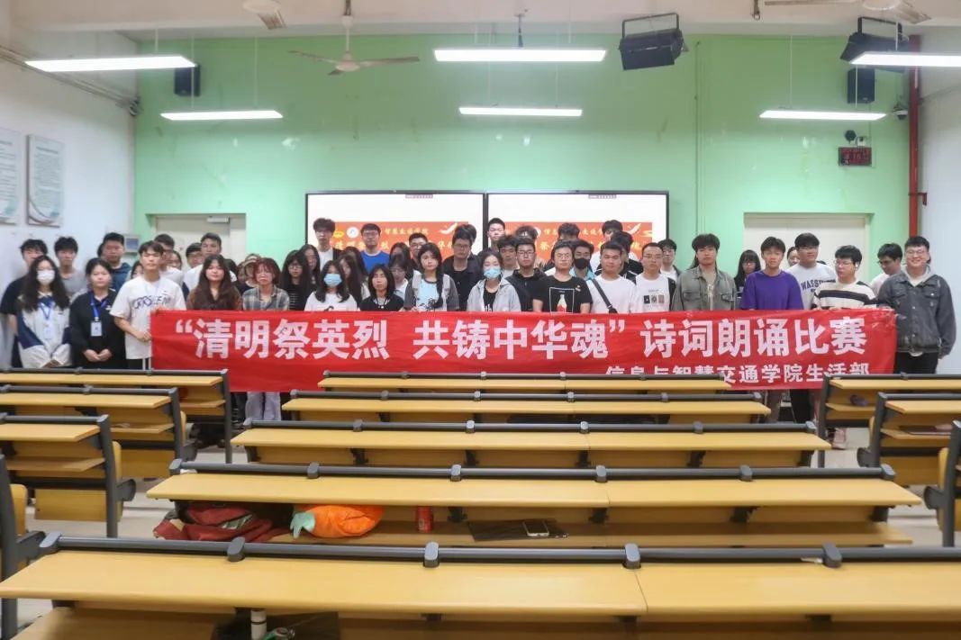 為宣揚中華優(yōu)秀傳統(tǒng)節(jié)日文化,讓同學(xué)們更深入的了解清明節(jié)所承載的文化內(nèi)涵與民族情懷。信息與智慧交通學(xué)院于4月11日晚在福道園自強樓1-4開展“清明祭英烈,共鑄中華魂”詩詞朗誦比賽活動。