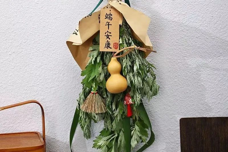 端午節(jié)在門口掛艾草、菖蒲(蒲劍)或石榴、胡蒜,都有其他原因。通常將掛艾草、菖蒲、榕枝艾、榕、菖蒲用紅紙綁成一束,然后插或懸在門上。因?yàn)檩牌褳樘熘形迦鹬?,象征?qū)除不祥的寶劍,因?yàn)樯L的季節(jié)和外形被視為感“百陰之氣”,葉片呈劍形,插在門口可以避邪。