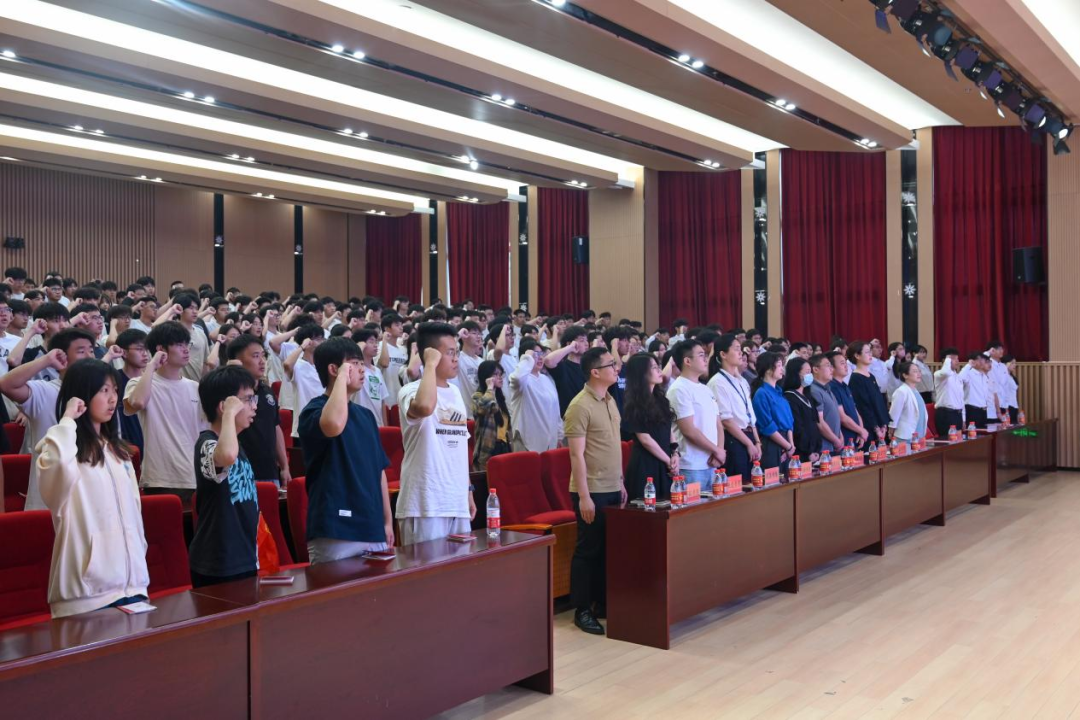 在學(xué)院團委學(xué)生兼職副書記夏昊城同學(xué)的領(lǐng)誓下,新團員們高舉右拳莊嚴宣誓,錚錚誓言在會場回蕩。這誓言將化作前行動力,激勵新團員們不忘初心,踐行承諾。