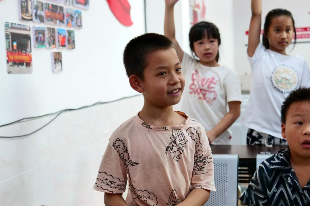 活動期間,隊(duì)員們以一場“數(shù)字傳聲筒”破冰小游戲拉開序幕。游戲瞬間點(diǎn)燃了現(xiàn)場氣氛,引發(fā)了小朋友們的熱情,也迅速拉近了隊(duì)員與小朋友們的距離。原本稍顯拘謹(jǐn)?shù)男∨笥褌冎饾u放松下來,與隊(duì)隊(duì)員融入一片。隨后,活動重心聚焦于溪源村極具特色的油茶非遺文化,隊(duì)員們圍繞油茶的制作工藝、生產(chǎn)流程、茶油作用,以及家鄉(xiāng)非遺項(xiàng)目等內(nèi)容,與小朋友們展開了一場既有深度又有溫度的交流。過程中,隊(duì)員們鼓勵小朋友們積極提問、大膽發(fā)言,引導(dǎo)他們主動思考本土文化,在輕松愉快的氛圍中,小朋友們對家鄉(xiāng)文化的認(rèn)知不再停留于表面,而是逐漸深入理解其獨(dú)特內(nèi)涵與魅力,同時(shí)也增強(qiáng)了小朋友們對家鄉(xiāng)文化的認(rèn)同感和自豪感。