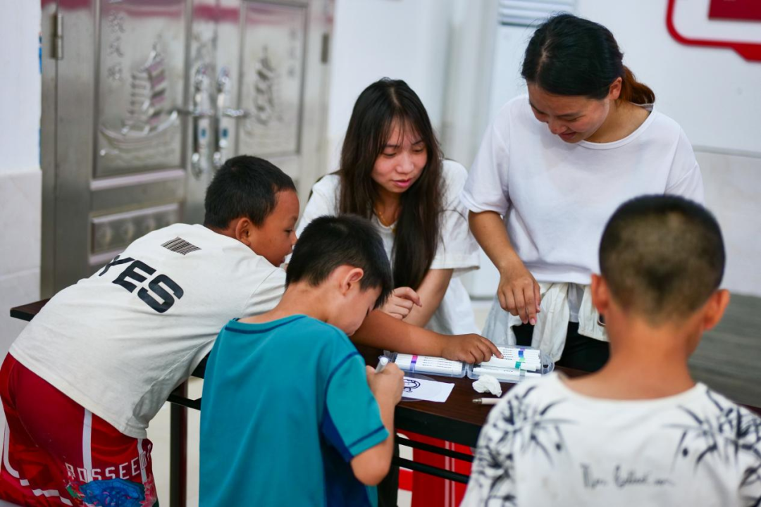 圖為實(shí)踐團(tuán)在三溪鄉(xiāng)溪源村對小朋友進(jìn)行調(diào)查問卷