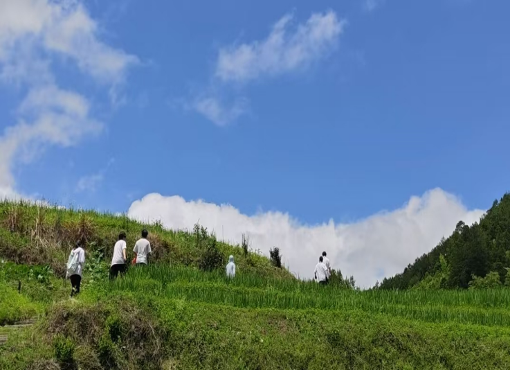 下一站實(shí)踐團(tuán)抵達(dá)屏南時(shí)光梯田,屏南時(shí)光梯田以“時(shí)光”為名,既藏著千年農(nóng)耕智慧的沉淀,也映照著當(dāng)代鄉(xiāng)村的新貌。實(shí)踐中,我們參與了梯田除草、農(nóng)耕文化訪談等活動(dòng),深刻體會(huì)到“一粥一飯,當(dāng)思來(lái)處不易”的內(nèi)涵。村干部提到,近年來(lái)通過(guò)文旅融合、電商助農(nóng),梯田產(chǎn)出的優(yōu)質(zhì)稻米、文創(chuàng)產(chǎn)品走出了大山,既鼓了村民的錢(qián)袋,也讓更多人了解到這份“大地藝術(shù)”的價(jià)值。