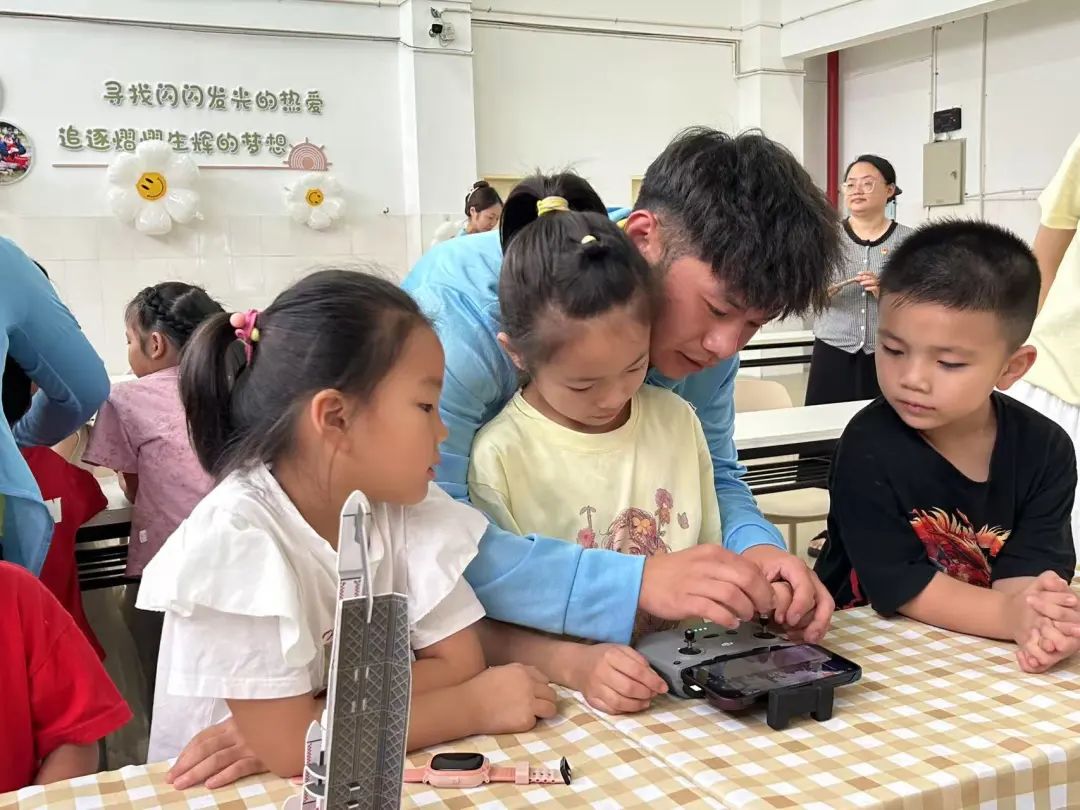 鄉(xiāng)村振興,教育筑基?!八{天禮儀志愿服務(wù)隊”深知,航空夢的種子,要在童年土壤里早早播撒。隊員們提前籌備,將已學(xué)到的航空知識整理為童趣故事;精心挑選安全且可拆解的航空模型拼圖,反復(fù)調(diào)試無人機飛行方案,只為給孩子們最生動的航空課堂。