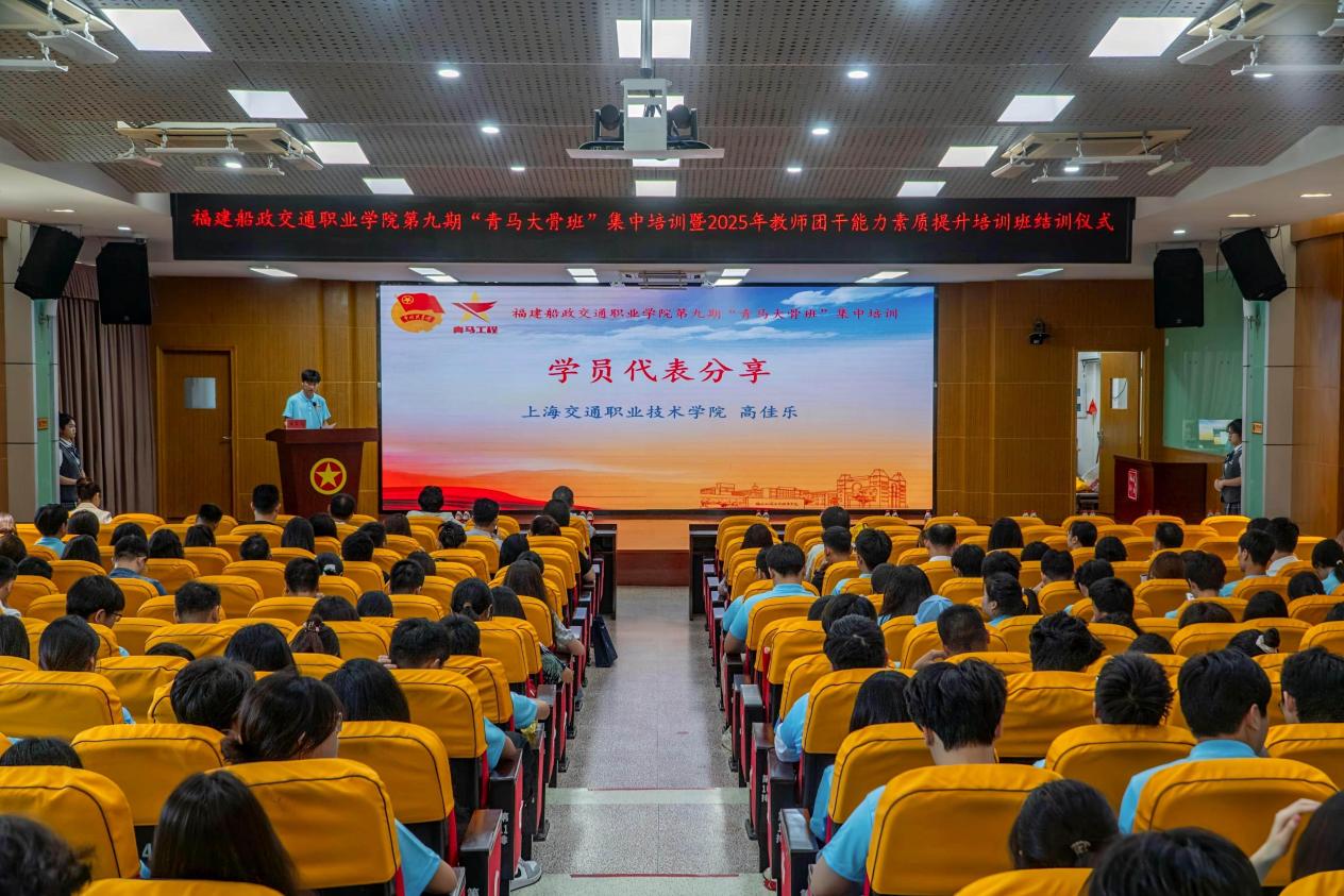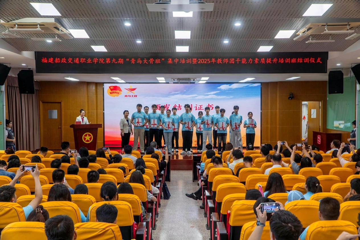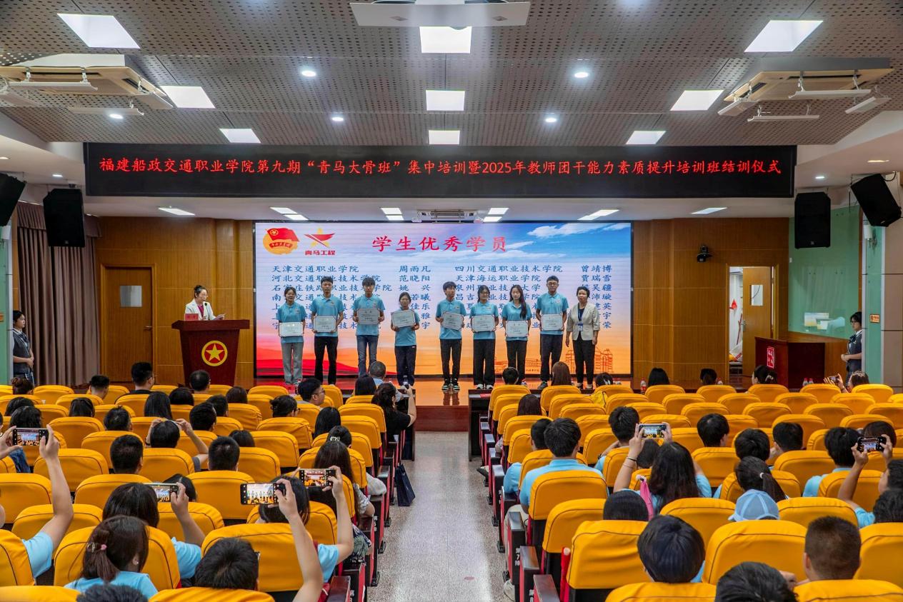 2025年7月25日上午,福建船政交通職業(yè)學(xué)院第九期“青馬大骨班”集中培訓(xùn)結(jié)訓(xùn)儀式在福道園行政樓六樓學(xué)術(shù)報(bào)告廳舉行。結(jié)營(yíng)儀式由學(xué)院團(tuán)委書記陳慧主持,上海交通職業(yè)技術(shù)學(xué)院高佳樂同學(xué)分享學(xué)習(xí)感悟。學(xué)院黨委副書記張輝為學(xué)員們頒發(fā)了優(yōu)秀學(xué)員證書和結(jié)訓(xùn)證書。