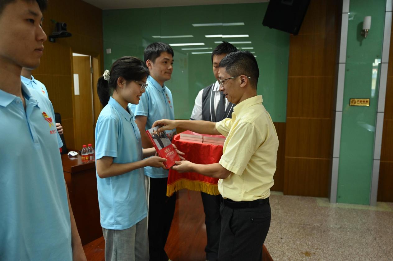 7月24日下午,學(xué)習(xí)班邀請(qǐng)了共青團(tuán)福建省委學(xué)校部部長(zhǎng)、省學(xué)聯(lián)秘書長(zhǎng)黃承祖老師為學(xué)員們傳達(dá)全國(guó)學(xué)聯(lián)二十八大會(huì)議精神。會(huì)前,他向京津冀滬+交通職業(yè)教育集團(tuán)聯(lián)盟校,閩疆合作共同體、閩寧合作共同體院校,以及福建省職業(yè)院校質(zhì)量振興共同體、鄉(xiāng)村振興共同體成員單位,以及我院第九期青馬學(xué)員代表,現(xiàn)場(chǎng)贈(zèng)閱圖書——《習(xí)近平與大學(xué)生朋友們》(第二卷)。他希望大家通過讀書,感受習(xí)近平總書記念茲在茲的青年情;更希望青馬學(xué)員們通過閱讀,展示我們新時(shí)代青年該有的樣子。