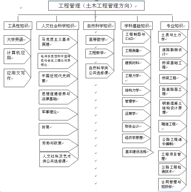 【培養(yǎng)目標】本專業(yè)培養(yǎng)德智體全面發(fā)展,適應土木工程建設技術與管理服務的需要,掌握與工程管理相關的土木工程技術、管理、經(jīng)濟和法律等基本知識,具備系統(tǒng)性、開放性的專業(yè)知識結構,獲得建造師、監(jiān)理工程師、試驗檢測工程師、工程造價師等所需的基礎知識,懂工程經(jīng)濟、善工程管理、會工程技術、實踐能力強、綜合素質(zhì)高、富有創(chuàng)新精神和創(chuàng)業(yè)能力的復合性應用型高級專門人才。畢業(yè)生能夠綜合運用土木工程技術與管理科學的理論與方法,在交通、建筑行業(yè)的施工、試驗檢測、監(jiān)理咨詢企業(yè)以及政府行業(yè)管理部門從事土木工程建設管理和工程技術服務工作。