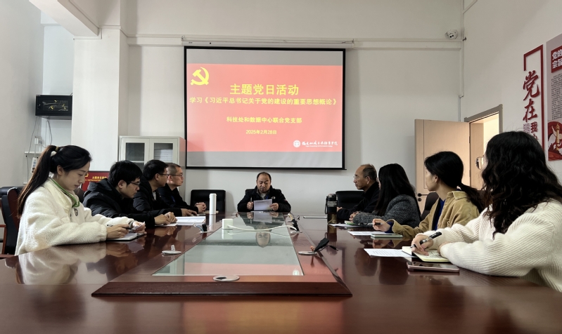 為深入學(xué)習(xí)貫徹習(xí)近平新時代中國特色社會主義思想,進(jìn)一步把習(xí)近平總書記關(guān)于黨的建設(shè)的重要思想領(lǐng)會深、把握準(zhǔn)、落到位,2025年2月28日下午,科技處和數(shù)據(jù)中心聯(lián)合黨支部在行政樓一樓黨員活動室組織全體黨員召開主題黨日,集中學(xué)習(xí)《習(xí)近平總書記關(guān)于黨的建設(shè)的重要思想概論》。