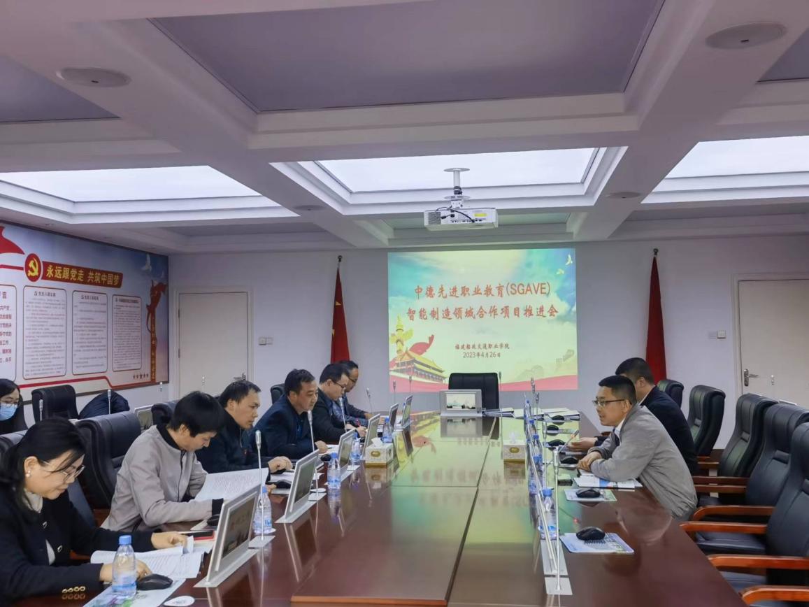 為積極落實教育部關(guān)于合作項目實施進度及質(zhì)量的要求,更好的達成項目中校企雙元合作,推進中德先進職業(yè)教育智能制造領(lǐng)域合作建設(shè)工作,4月26日下午,德馬吉森精機中國教育行業(yè)總監(jiān)、項目負責(zé)人孫立及項目專家敦永超一行2人蒞校指導(dǎo),在行政樓307會議室組織召開中德先進職業(yè)教育 (SGAVE)智能制造領(lǐng)域合作項目推進會。對外交流中心、教務(wù)處、科技處、教師工作部、機械與智能制造學(xué)院等部門負責(zé)人參加了會議。此次會議對合作項目的基本情況、項目實施方案重點、實施進度及階段性成果等進行了研討。
