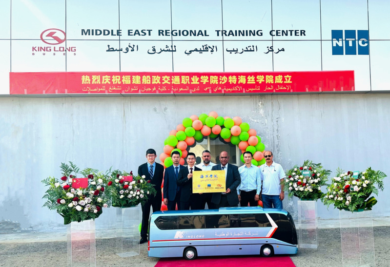 12月26日,福建船政交通職業(yè)學(xué)院與廈門金龍聯(lián)合汽車工業(yè)有限公司共建的沙特“海絲學(xué)院”在沙特阿拉伯王國(guó)吉達(dá)舉行揭牌儀式。廈門金龍沙特公司總經(jīng)理黃初俊、中東服務(wù)大區(qū)經(jīng)理王瓊,沙特NTC(National Trade Company LTD)公司銷售總監(jiān)亞瑟、售后服務(wù)經(jīng)理伊斯梅爾,汽車學(xué)院院長(zhǎng)蘇慶列、汽車實(shí)訓(xùn)中心主任黃知秋以及當(dāng)?shù)?/span>30位學(xué)員等參加了揭牌儀式。