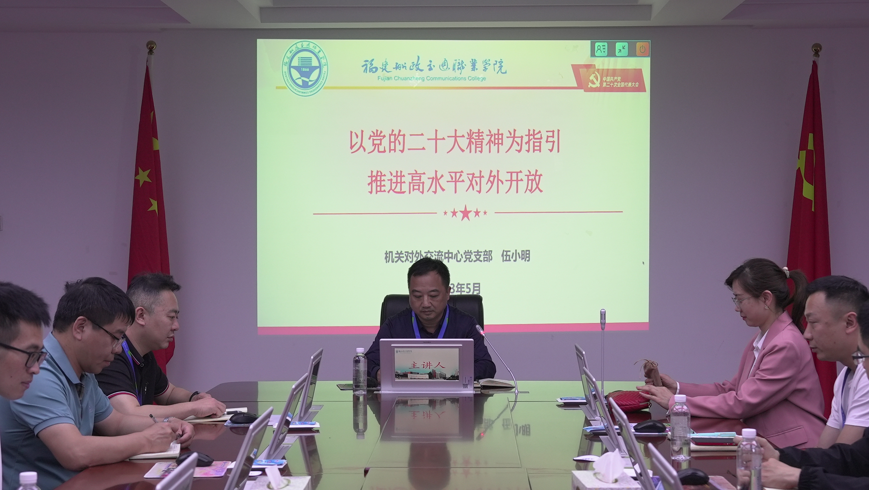 為深入學(xué)習(xí)貫徹黨的二十大精神,深刻領(lǐng)會、全面把握黨的二十大精神的重大意義和重大部署,切實用黨的二十大精神武裝頭腦、指導(dǎo)實踐,5月24日下午,對外交流中心黨支部書記伍小明講授學(xué)習(xí)宣傳貫徹黨的二十大精神專題黨課,支部全體黨員聆聽黨課。