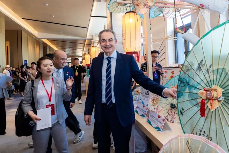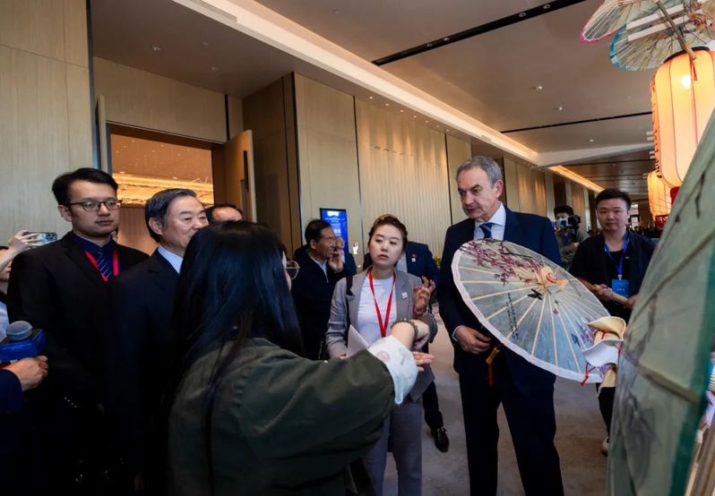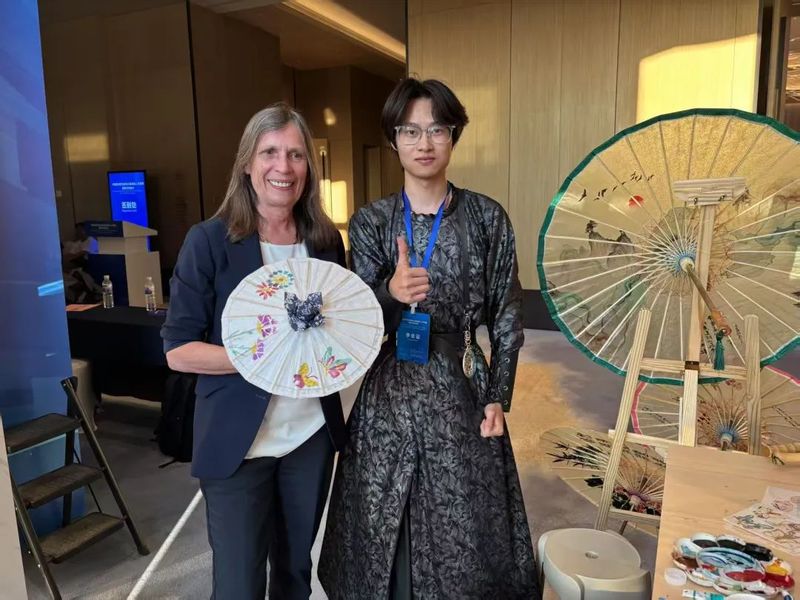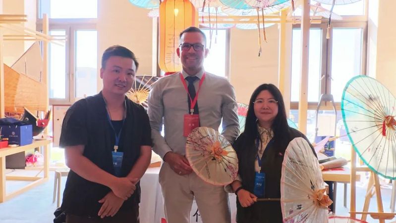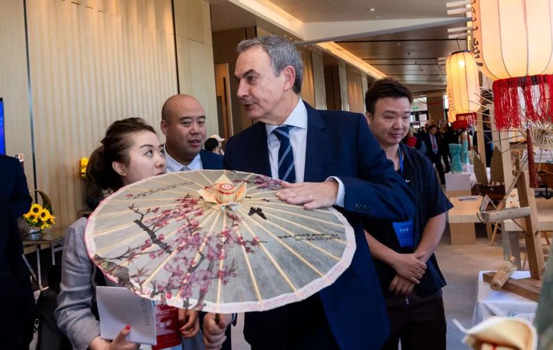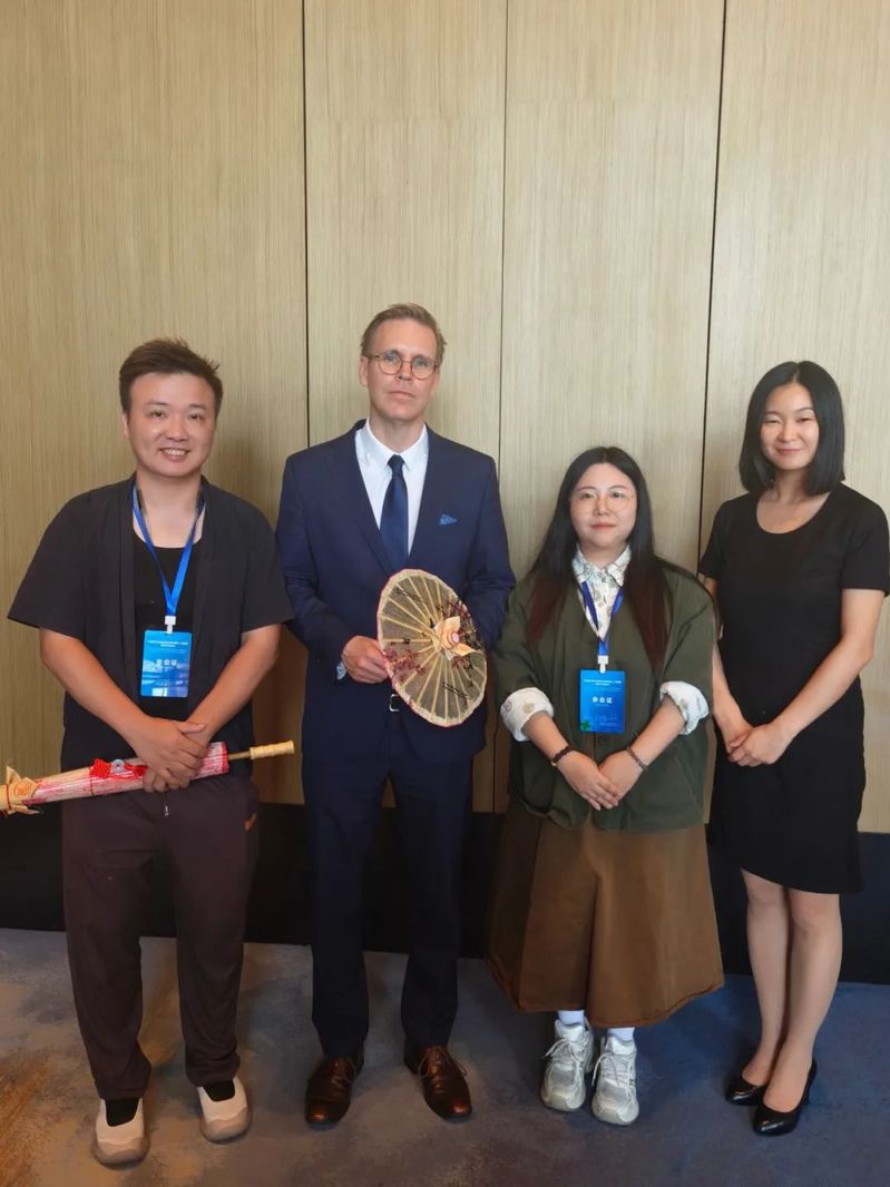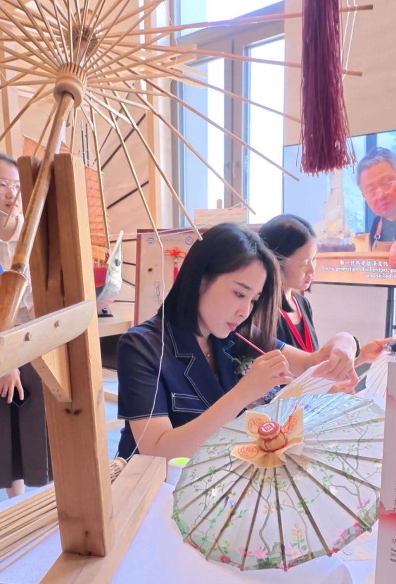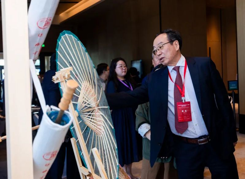 福州油紙傘不僅作為精美的藝術品被欣賞,更成為傳遞中華情誼、促進民心相通的橋梁。我院師生將精心制作的福州油紙傘作為象征友誼與祝福的文化禮物,贈予了到訪展位的各國友人。西班牙前首相薩帕特羅先生饒有興致地欣賞了油紙傘,并欣然接受了這份蘊含東方美意與匠心的禮物。中國歐盟協(xié)會秘書長宋敬武先生也對我院展示的福州非遺油紙傘項目給予了高度評價和特別關注,詳細詢問了項目在我院職業(yè)教育中的傳承與創(chuàng)新實踐。我院非遺傳承教育成果得到了來自與會各方的認可,并贊譽福州非遺油紙傘為連接中歐文明的獨特信物。
