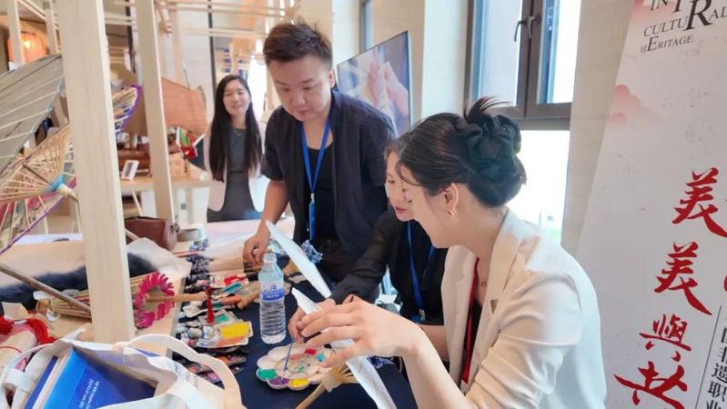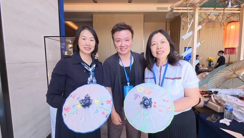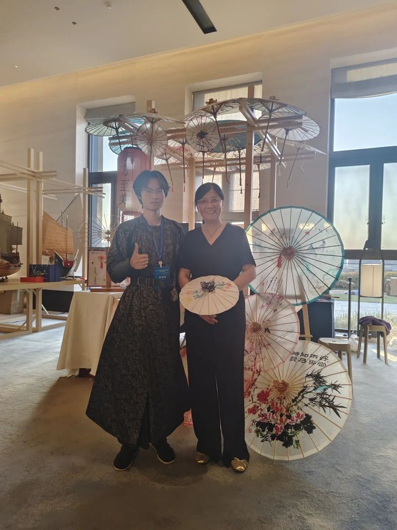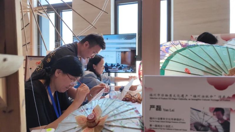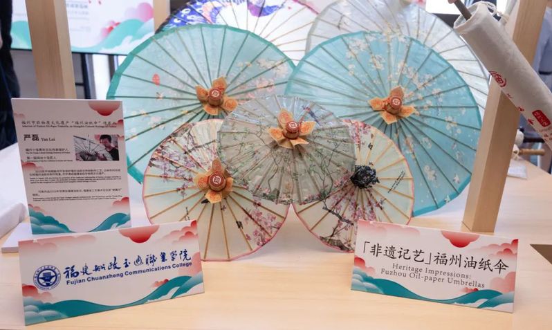 會議期間同步舉辦了“跨越山海 美美與共”中國非遺職業(yè)教育成果巡展之“非遺記藝”文化藝術交流展。我院非遺傳習社指導教師、通識教育學院教師林丹青與我院特聘非遺傳承人嚴磊帶領社團成員攜福建省第六批省級非物質文化遺產(chǎn)代表性項目——福州油紙傘制作技藝精彩亮相,成為展會上一道亮麗風景,向世界展示了我院在非遺傳承與職業(yè)教育融合創(chuàng)新中的豐碩成果。