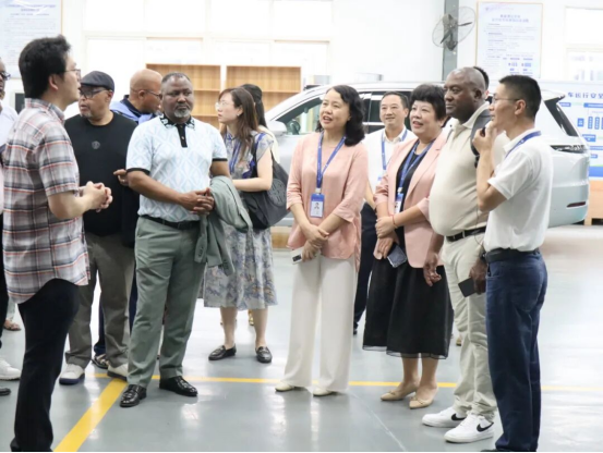 交流期間,陳群院長(zhǎng)、陳常暉副院長(zhǎng)陪同訪華團(tuán)考察新能源汽車產(chǎn)教融合示范園、航海學(xué)院實(shí)訓(xùn)基地、航空學(xué)院實(shí)訓(xùn)基地。