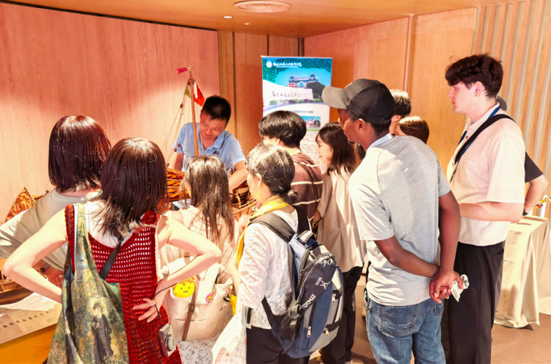 展位現(xiàn)場,精巧的福船模型、精湛的傳統(tǒng)技藝演示與豐富的圖文影像資料相得益彰,生動(dòng)還原了水密隔艙這一古老造船智慧的奧秘,迅速吸引各國游客、參展方代表及媒體駐足關(guān)注。我院教師熱情接待每一位參觀者,細(xì)致講解福船的歷史淵源與文化價(jià)值,還通過互動(dòng)演示工藝環(huán)節(jié),讓國際觀眾沉浸式感受中華優(yōu)秀非物質(zhì)文化遺產(chǎn)的獨(dú)特風(fēng)采。