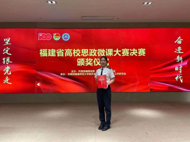 “堅(jiān)定跟黨走,奮進(jìn)新時(shí)代”福建省高校思政微課大賽經(jīng)過為期半年的初賽、網(wǎng)絡(luò)展示等激烈角逐,總決賽于6月21日在福建師范大學(xué)旗山校區(qū)舉行。我院學(xué)子陳靜怡同學(xué)微課作品《學(xué)好四史,牢記初心使命》榮獲高職高專組特等獎(jiǎng)!