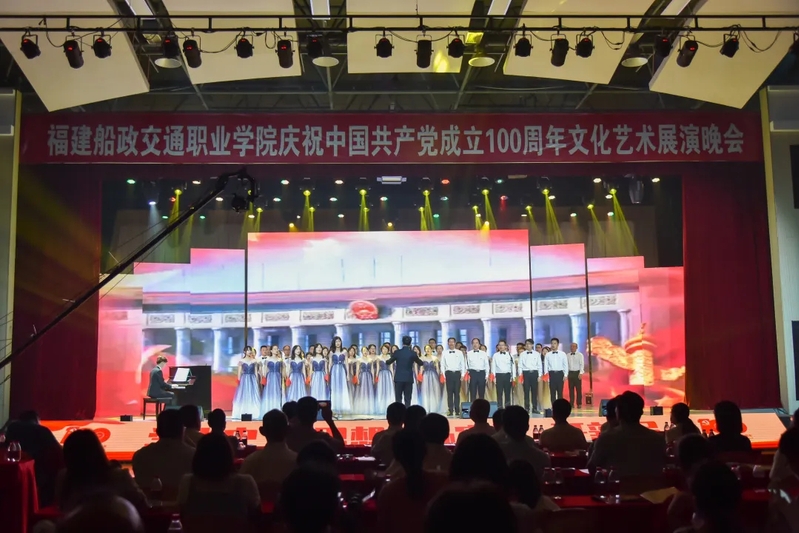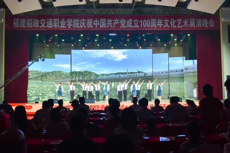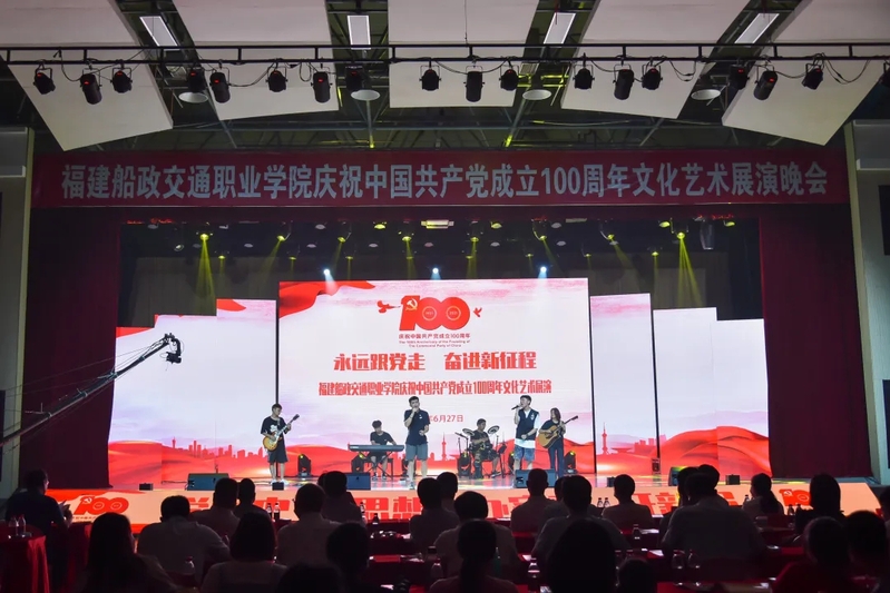 2021年6月27日晚19:00,“永遠(yuǎn)跟黨走 奮進(jìn)新征程”福建船政交通職業(yè)學(xué)院慶祝中國共產(chǎn)黨成立100周年文化藝術(shù)展演晚會(huì)在學(xué)院北區(qū)文體中心順利舉辦,學(xué)院黨委書記張海明,學(xué)院黨委副書記、院長陳錦輝,學(xué)院黨委副書記陳宜大,學(xué)院紀(jì)委書記張輝,學(xué)院副院長高汝武、張祖柱、陳艷紅,學(xué)院所有職能部門負(fù)責(zé)人,閩清職專、合作企業(yè)、共建單位代表,學(xué)院師生等500余名參加并觀看了本次晚會(huì)。本次晚會(huì)采用線上線下同步觀看,線上觀看人次達(dá)到8.23萬。