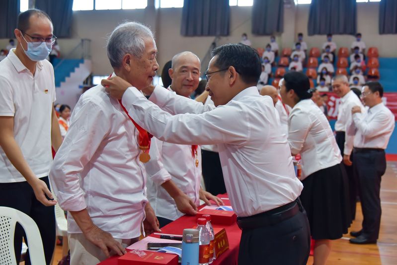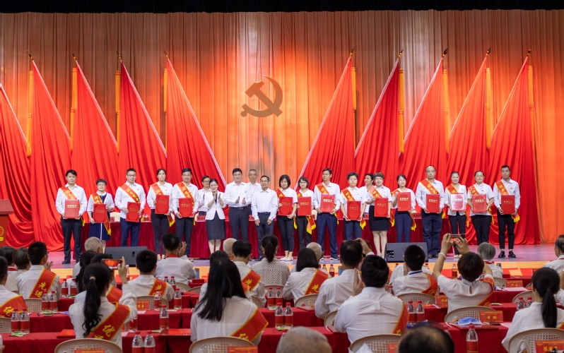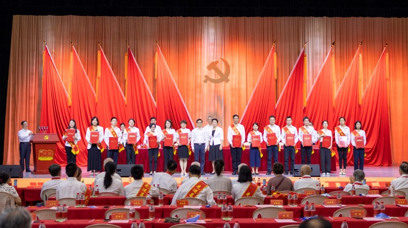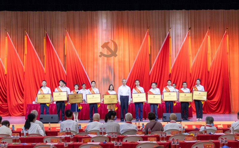 黨委班子成員為“光榮在黨50年”老黨員頒發(fā)紀(jì)念章,為優(yōu)秀共產(chǎn)黨員、優(yōu)秀黨務(wù)工作者和先進(jìn)基層黨組織頒獎(jiǎng)。