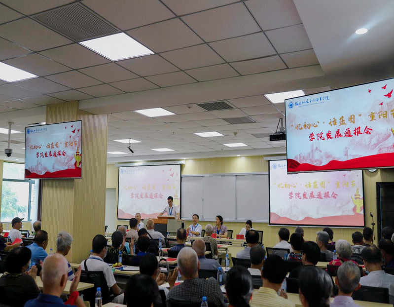 隨后,“憶初心、話藍(lán)圖”重陽(yáng)節(jié)學(xué)院發(fā)展通報(bào)會(huì)在培訓(xùn)學(xué)院會(huì)議室隆重召開(kāi),學(xué)院領(lǐng)導(dǎo)班子成員、職能部門(mén)負(fù)責(zé)人、離退休教師參加了大會(huì)。會(huì)議由學(xué)院黨委副書(shū)記陳宜大主持。