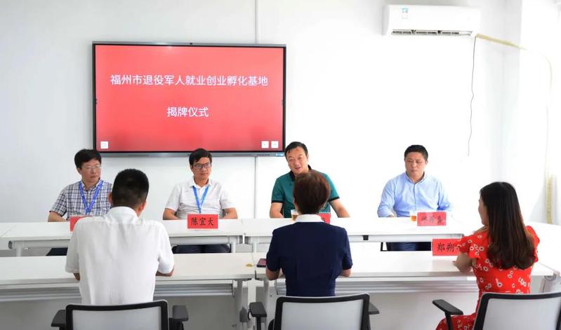2021年6月4日上午,“福州退役軍人就業(yè)創(chuàng)業(yè)孵化基地”揭牌儀式在我院新實訓(xùn)大樓創(chuàng)新創(chuàng)業(yè)創(chuàng)造孵化基地舉行,福州市退役軍人事務(wù)局副局長袁朝海、福州市退役軍人服務(wù)中心相關(guān)人員,學(xué)院黨委副書記陳宜大以及培訓(xùn)學(xué)院、創(chuàng)新創(chuàng)業(yè)學(xué)院相關(guān)負責(zé)人參加儀式。