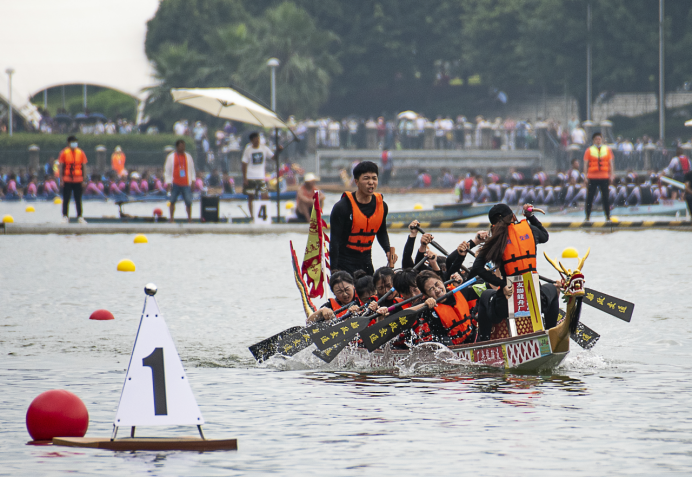 本次競賽項目分為專業(yè)組、公開組(含國際組)、高校組和傳統(tǒng)龍舟組等4個組別。賽事決賽階段由CCTV5全程直播。我院龍舟女隊參加高校女子組別的比賽。