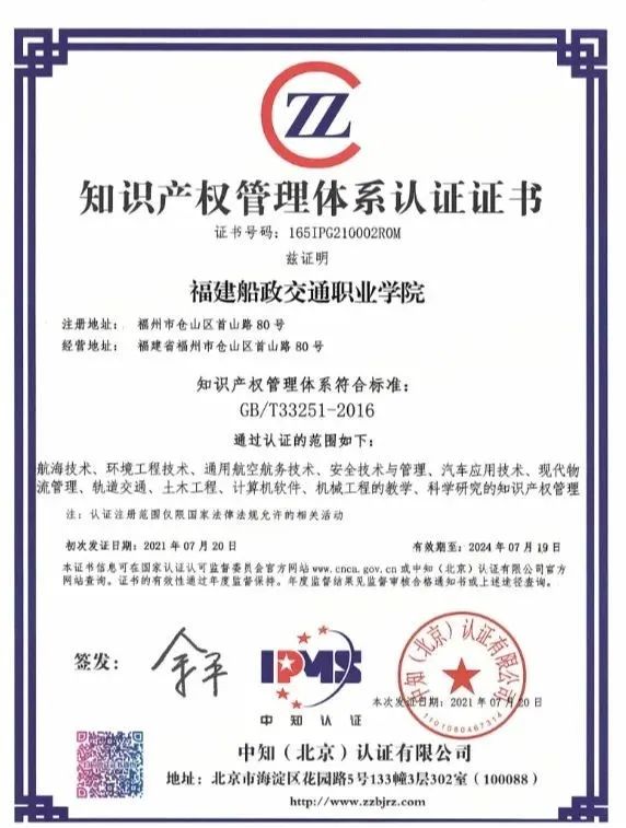 2021年,我院在全省高校率先開展貫徹GB/T33251-2016《高等學(xué)校知識產(chǎn)權(quán)管理規(guī)范》工作,并于2021年7月20日順利通過中知(北京)認(rèn)證有限公司認(rèn)證審核,獲得全省高校第一張認(rèn)證證書(證書號:165IPG210002R0M)。一直以來,學(xué)院領(lǐng)導(dǎo)高度重視,各相關(guān)部門通力合作,承辦部門嚴(yán)謹(jǐn)高效,對國家標(biāo)準(zhǔn)的各項(xiàng)要求認(rèn)真貫徹落實(shí),學(xué)院在知識產(chǎn)權(quán)管理規(guī)范方面有較大提升。認(rèn)證審核的通過標(biāo)志著學(xué)院知識產(chǎn)權(quán)管理工作上了一個(gè)新臺(tái)階,提升了學(xué)院知識產(chǎn)權(quán)管理、運(yùn)用水平,推動(dòng)了學(xué)院科研能力、產(chǎn)學(xué)研能力發(fā)展,進(jìn)一步提高人才培養(yǎng)質(zhì)量和科技創(chuàng)新能力。