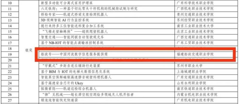 6月28日,在國(guó)家公證人員監(jiān)督公證下,大賽組委會(huì)完成成績(jī)統(tǒng)計(jì)和獎(jiǎng)項(xiàng)評(píng)定工作,共評(píng)出金獎(jiǎng)32項(xiàng)、銀獎(jiǎng)63項(xiàng)、銅獎(jiǎng)92項(xiàng)。經(jīng)過(guò)激烈角逐,我院柳燕妮和吳為民老師精心指導(dǎo)的參賽項(xiàng)目《船政號(hào)-中國(guó)河流數(shù)字信息服務(wù)提供商》,經(jīng)過(guò)層層選拔和激烈競(jìng)爭(zhēng)榮獲國(guó)家銀獎(jiǎng),是福建省高職院校取得的最好成績(jī)。