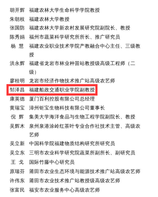 發(fā)布者:發(fā)布時間:2022-08-18瀏覽次數(shù):375 8月15日,福建省科學技術(shù)廳、中共福建省委組織部、中共福建省委宣傳部、福建省發(fā)展和改革委員會、福建省教育廳、福建省財政廳、福建省人力資源和社會保障廳、福建省農(nóng)業(yè)農(nóng)村廳聯(lián)合發(fā)布《關(guān)于公布福建省“最美科技特派員”名單的通知》,我院鄒澤昌副教授上榜。