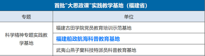 此次公布的“大思政課”實(shí)踐教學(xué)基地,由教育部分別會(huì)同有關(guān)部門以現(xiàn)有基地(場(chǎng)館)為基礎(chǔ)分專題設(shè)立。福建此次入選的12家“大思政課”實(shí)踐教學(xué)基地,涵蓋5個(gè)專題類別。