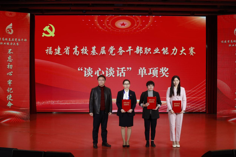 12月13日,在全省高?;鶎狱h務(wù)干部職業(yè)能力大賽上,我校參賽代表隊榮獲高職組團體一等獎。黃奕主講的《堅守信仰的青春最美麗》黨課以92.1的高分榮獲“微黨課”賽項全省第一名;欒靜在“談心談話”賽項中精密構(gòu)思、沉穩(wěn)應(yīng)對,以90.8的高分榮獲高職組第二名。