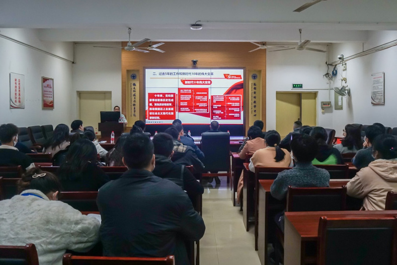 黨的二十大是在我國(guó)邁上全面建設(shè)社會(huì)主義現(xiàn)代化國(guó)家新征程、向第二個(gè)百年奮斗目標(biāo)進(jìn)軍的關(guān)鍵時(shí)刻召開(kāi)的一次十分重要的大會(huì),舉國(guó)關(guān)注、世界矚目。為深入學(xué)習(xí)宣傳貫徹黨的二十大精神,12月7日,學(xué)校黨委委員、副校長(zhǎng)張祖柱蒞臨信息與智慧交通學(xué)院在福道園自強(qiáng)樓2-1開(kāi)展《黨的二十大精神專(zhuān)題宣講會(huì)》。參會(huì)人員有教務(wù)處、財(cái)務(wù)處、信息與智慧交通學(xué)院全體黨員教職工。