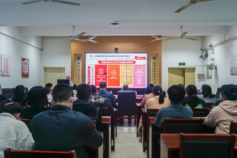 張祖柱副校長(zhǎng)以“黨的二十大主題:大會(huì)內(nèi)容和精神的高度概括”“過(guò)去5年的工作和新時(shí)代10年的偉大變革”“開(kāi)辟馬克思主義中國(guó)化時(shí)代化新境界”“以中國(guó)式現(xiàn)代化全面推進(jìn)中華民族偉大復(fù)興”“黨和國(guó)家事業(yè)的新部署新要求”“堅(jiān)定不移推進(jìn)全面從嚴(yán)治黨的部署和要求”“努力推動(dòng)職業(yè)教育高質(zhì)量發(fā)展的若干思考”七個(gè)方面展開(kāi),全面解讀了黨的二十大精神,深入闡釋了黨的二十大提出的新思想新論斷,深刻闡述了黨的二十大作出的新部署新要求。