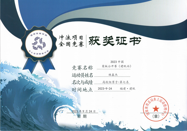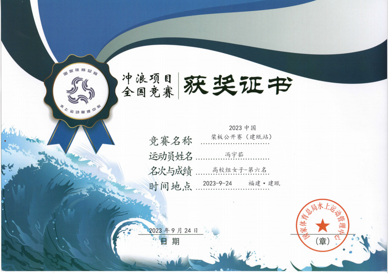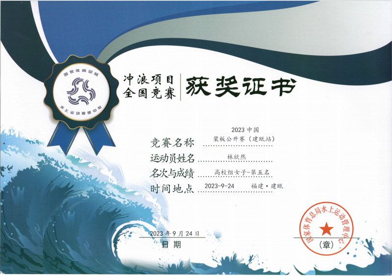 發(fā)布者:發(fā)布時(shí)間:2023-09-25瀏覽次數(shù):381 由國家體育總局水上運(yùn)動管理中心主辦的“福酒股份杯”中國槳板公開賽(建甌站)在徐墩鎮(zhèn)北津湖水上中心圓滿收官。比賽期間,來自全國各地的300名運(yùn)動員逐浪競技。我院槳板隊(duì)運(yùn)動員賽前積極備戰(zhàn)訓(xùn)練,比賽中奮勇爭先,劈波斬浪。獲得2023中國槳板公開賽建甌站高校組團(tuán)體總分第一名的好成績;其中高校女子組林欣然、馮宇茹分獲第五名、第六名;高校男子組林晨旭、上官正東、林鑫杰分獲第二名、第四名、第七名。
