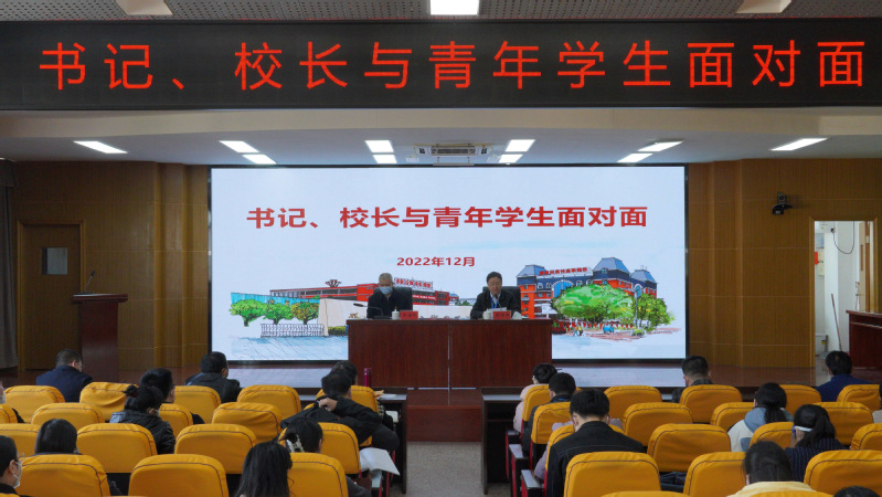 12月23日,為深入學(xué)習(xí)宣傳貫徹黨的二十大精神,我校黨委書記張海明、校長(zhǎng)陳錦輝以《思想偉力領(lǐng)航向,擘畫復(fù)興新藍(lán)圖》為主題,與青年學(xué)生面對(duì)面宣講黨的二十大精神。2022年新提任干部、所在黨支部成員、分管部門成員以及學(xué)生代表參加本次活動(dòng)。
