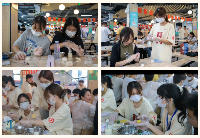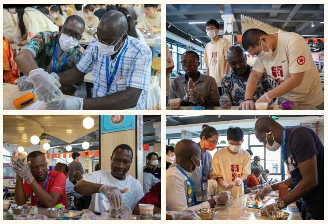 座談會(huì)結(jié)束后,師生們前往食堂DIY冰皮月餅。在校培訓(xùn)的科特迪瓦職業(yè)培訓(xùn)學(xué)校師資培訓(xùn)班的老師們一同參加了自制月餅的活動(dòng)。中外師生們?cè)谥谱髟嘛炛?,體驗(yàn)中華傳統(tǒng)文化,共度中秋佳節(jié)。