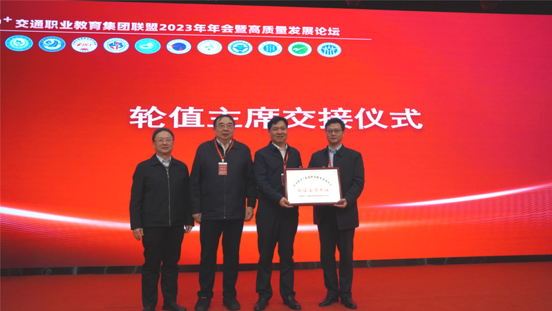 大會舉行了聯(lián)盟輪值主席單位交接儀式。學(xué)院黨委副書記、院長陳錦輝將“輪值主席單位牌”移交給南京交通職業(yè)技術(shù)學(xué)院院長王道峰。