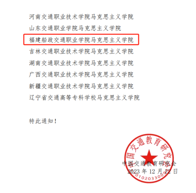 近日,我院馬克思主義學院被評為2023年全國交通職業(yè)院校示范馬克思主義學院。