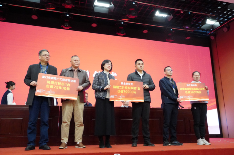 會上,鐘嘉升校友、黃金鐘校友、鄭文振校友分別向?qū)W校捐贈了教學(xué)實(shí)訓(xùn)設(shè)備等價值共計14.74萬元。