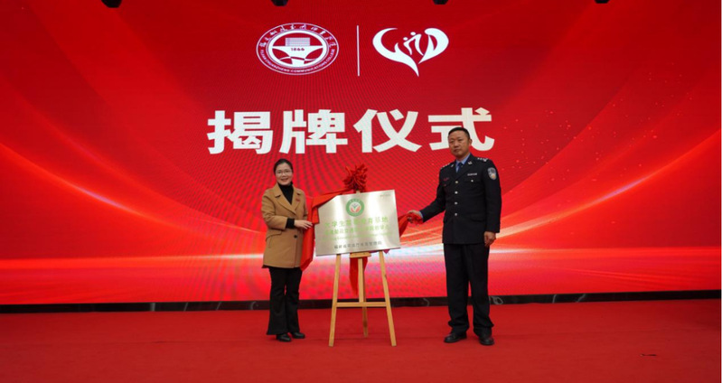 在與會(huì)人員的共同見證下,李佐云副局長與陳艷紅副院長共同為“大學(xué)生禁毒教育基地”揭牌。