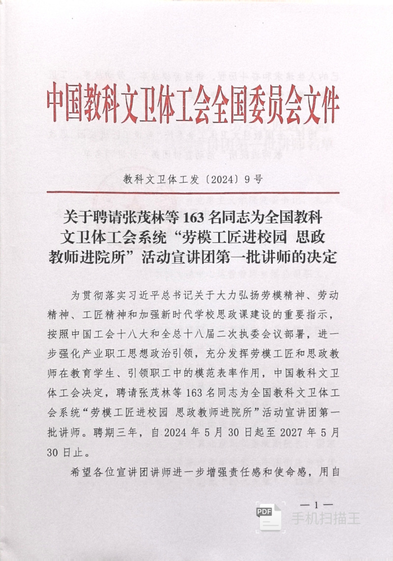 近日,中國(guó)教科文衛(wèi)體工會(huì)全國(guó)委員會(huì)印發(fā)《關(guān)于聘請(qǐng)張茂林等163名同志為全國(guó)教科文衛(wèi)體工會(huì)系統(tǒng)“勞模工匠進(jìn)校園思政教師進(jìn)院所”活動(dòng)宣講團(tuán)第一批講師的決定》,我院鄒澤昌老師被聘為全國(guó)教科文衛(wèi)體工會(huì)系統(tǒng)“勞模工匠進(jìn)校園思政教師進(jìn)院所”活動(dòng)宣講團(tuán)第一批講師。