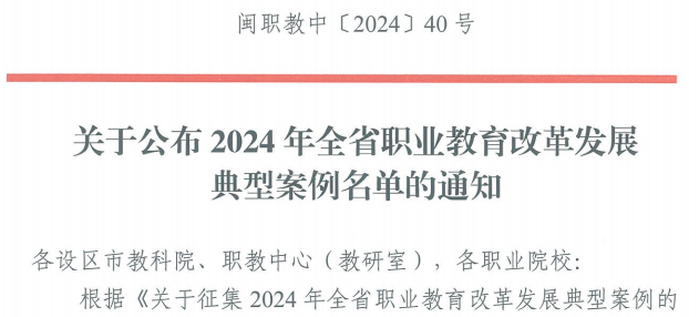 我院堅(jiān)持以國(guó)家“雙高”建設(shè)為引領(lǐng),持續(xù)深化職教改革,在院校治理、人才培養(yǎng)模式改革、教師隊(duì)伍、專業(yè)建設(shè)、產(chǎn)教融合、對(duì)外交流、技術(shù)技能創(chuàng)新服務(wù)平臺(tái)等方面形成了一批可復(fù)制、可推廣的典型經(jīng)驗(yàn)。2022年以來(lái),共10個(gè)案例入選全省職業(yè)教育改革發(fā)展典型案例,充分展示我院不斷深化職教改革所取得的新成效。我院將充分發(fā)揮典型案例的示范作用,繼續(xù)深化落實(shí)職業(yè)教育改革,探索新時(shí)代高職創(chuàng)新發(fā)展的新模式、新路徑,推動(dòng)職業(yè)教育高質(zhì)量發(fā)展。