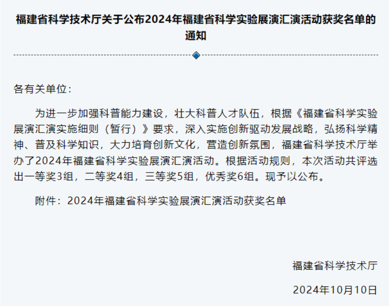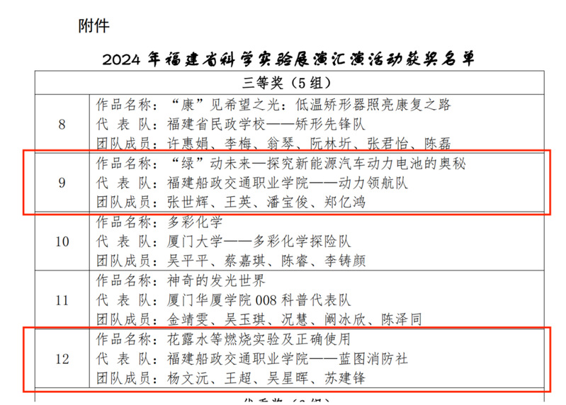近日,由福建省科學(xué)技術(shù)廳主辦的2024年福建省科學(xué)實(shí)驗(yàn)展演匯演大賽在福州舉行,我院科技處選送的汽車(chē)學(xué)院作品“‘綠’動(dòng)未來(lái)—探究新能源汽車(chē)動(dòng)力電池的奧秘”科普實(shí)驗(yàn)項(xiàng)目、安全與環(huán)境學(xué)院作品“花露水等燃燒實(shí)驗(yàn)及正確使用”科普實(shí)驗(yàn)項(xiàng)目榮獲三等獎(jiǎng)。