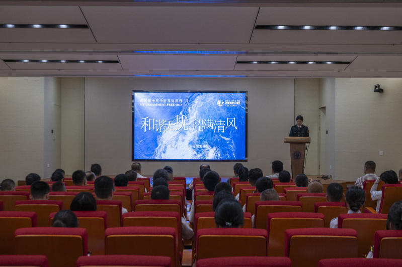 6月18日活動(dòng)啟動(dòng)儀式在藝新樓舉行,福州海事局副局長(zhǎng)鄭俊義,福建海運(yùn)集團(tuán)黨委副書記楊升,學(xué)院黨委委員、副院長(zhǎng)陳艷紅,相關(guān)企業(yè)船員代表60余人出席活動(dòng)。陳艷紅致辭致敬海員并致謝合作單位,海事局、海運(yùn)集團(tuán)嘉賓強(qiáng)調(diào)海員對(duì)海洋強(qiáng)國(guó)的重要作用,呼吁共建維護(hù)船員權(quán)益,構(gòu)建和諧航海文化。
