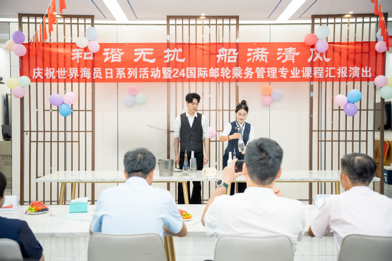 為慶祝世界海員日并檢驗(yàn)教學(xué)成果,6月18日,航海學(xué)院在郵輪五高訓(xùn)練中心一期成功舉辦了“和諧無擾 船滿清風(fēng)”世界海員日系列活動(dòng)暨24級(jí)國(guó)際郵輪乘務(wù)管理專業(yè)課程匯報(bào)演出。航海學(xué)院領(lǐng)導(dǎo)、行業(yè)專家及師生代表出席了本次活動(dòng)。