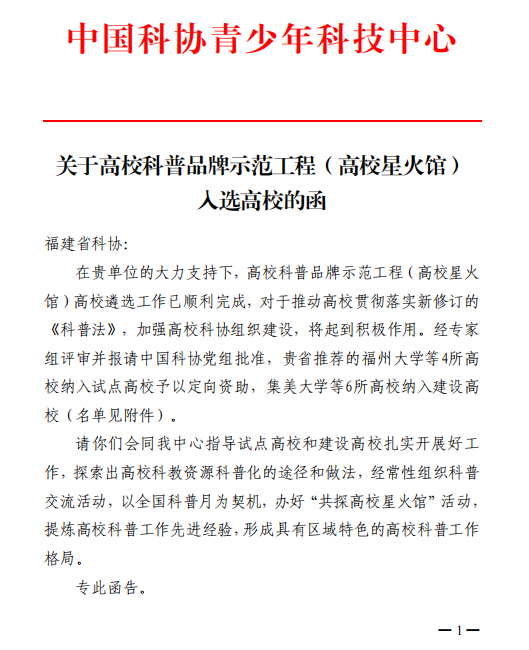 此次入選“高校科普品牌示范工程(高校星火館)”,是對(duì)我院服務(wù)社會(huì)、普及科學(xué)知識(shí)能力的充分肯定。作為建設(shè)高校,學(xué)院將在中國(guó)科協(xié)青少年科技中心與福建省科協(xié)的共同指導(dǎo)下,緊密結(jié)合自身專業(yè)特色與職業(yè)教育優(yōu)勢(shì),整合資源,扎實(shí)推進(jìn),打造具有“船政特色”的科普品牌,力爭(zhēng)將“星火館”建設(shè)成為提升師生及公眾科學(xué)素養(yǎng)、服務(wù)區(qū)域創(chuàng)新發(fā)展的重要平臺(tái),為構(gòu)建高??破展ぷ餍赂窬重暙I(xiàn)力量。