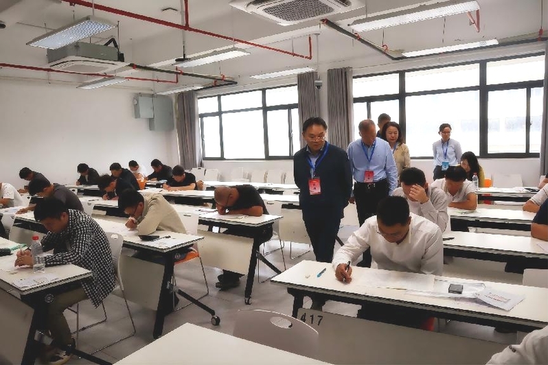 陳孝平、高軍剛一行首先來(lái)到學(xué)院考點(diǎn),實(shí)地考察了監(jiān)控室、考務(wù)室以及各個(gè)考場(chǎng),詳細(xì)了解了考場(chǎng)布置、后勤保障、應(yīng)急處置、綜合服務(wù)、考生參考人數(shù)、參考率等情況,對(duì)學(xué)院在考點(diǎn)組織、考場(chǎng)管理以及服務(wù)保障等方面工作給予了充分肯定。