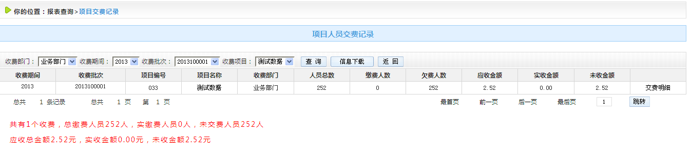 4.3.1.2項(xiàng)目交費(fèi)統(tǒng)計(jì)