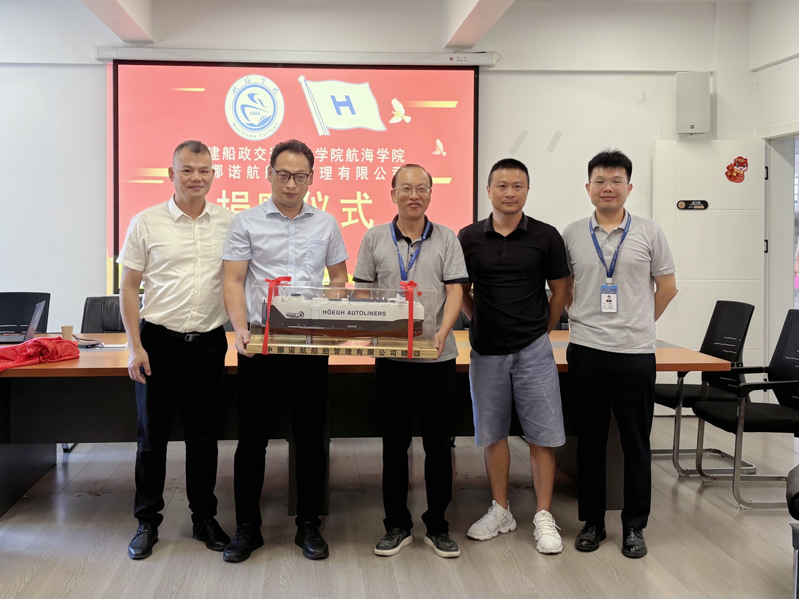 2025年9月11日,福建船政交通職業(yè)學(xué)院迎來了一份意義非凡的禮物——中挪諾航船舶管理有限公司專程向我院捐贈了一艘精美的中型滾裝船模型。捐贈儀式在校友之家307教室舉行,學(xué)院黨總支書記江文、企業(yè)代表與航海學(xué)院師生代表共同見證了這一重要時刻。