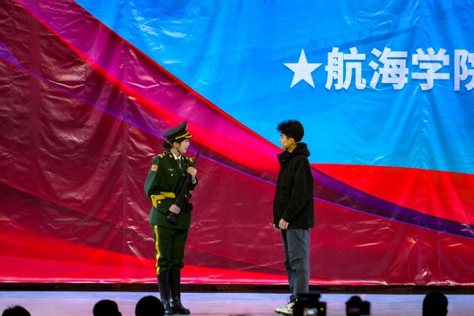 19時(shí)整,晚會(huì)正式拉開帷幕。主持人簡(jiǎn)要介紹到場(chǎng)領(lǐng)導(dǎo)與嘉賓,點(diǎn)明“軍管鑄魂·航海追夢(mèng)”的核心主題。“半軍事化管理標(biāo)兵”代表率先登臺(tái)發(fā)言,他結(jié)合自身經(jīng)歷,分享了初入校園時(shí)的忐忑,以及在日復(fù)一日的隊(duì)列訓(xùn)練、內(nèi)務(wù)整理、集體生活中,逐漸磨礪意志、收獲成長(zhǎng)的點(diǎn)滴感悟。